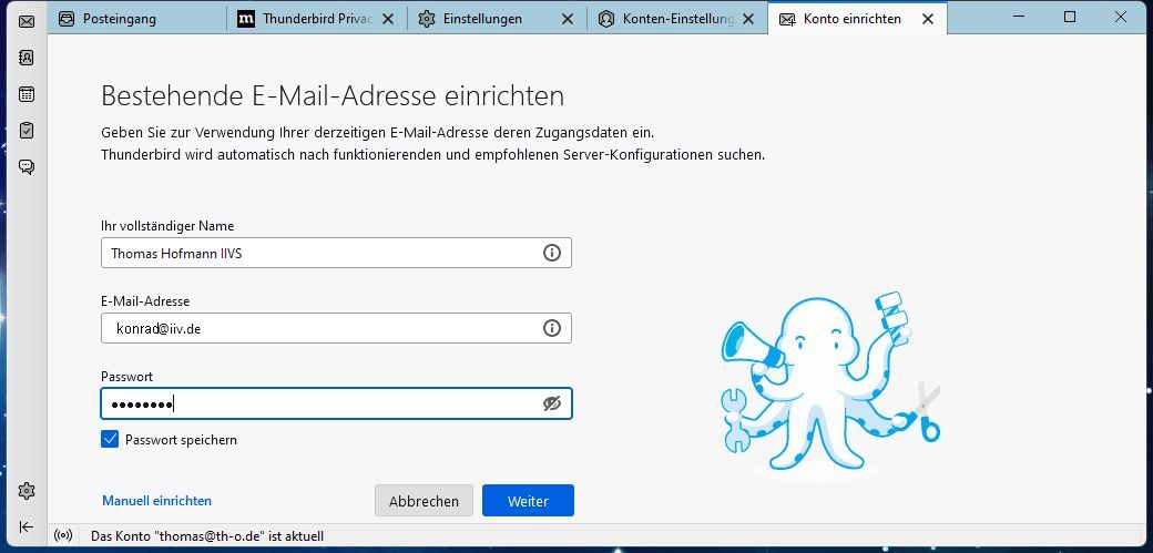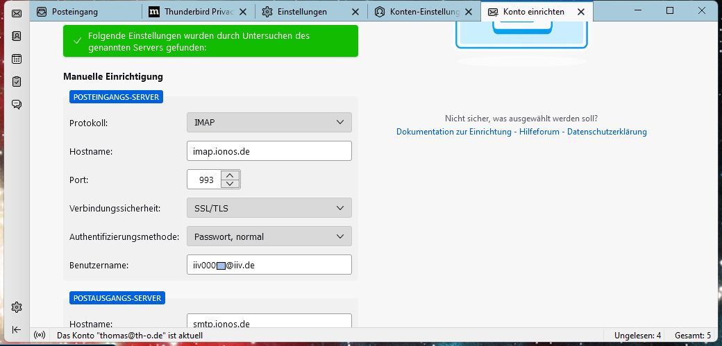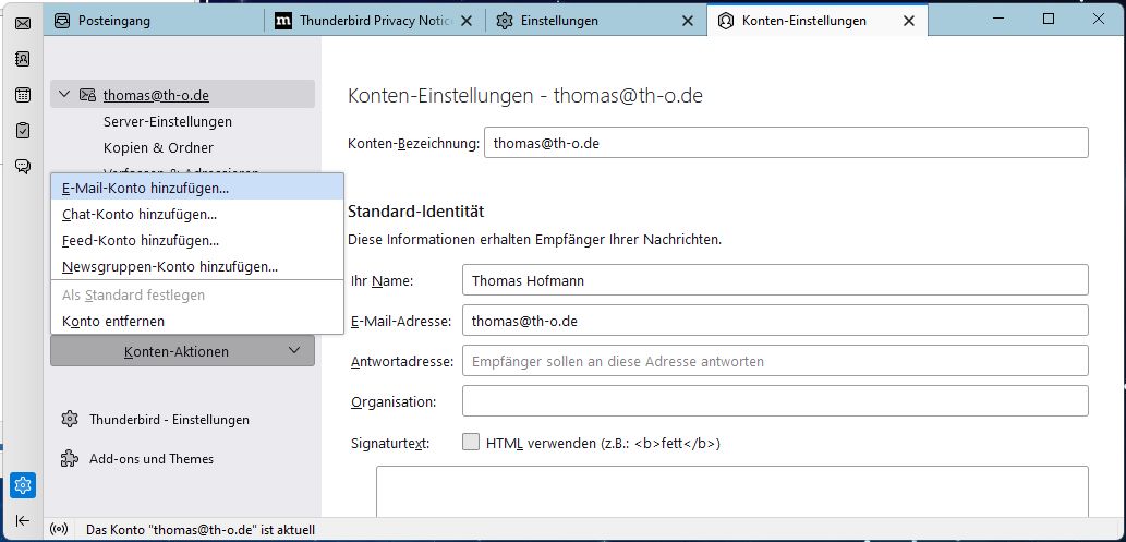 Ab hier geht es um die Überprüfung deines vorhandenen #Konto - s für #IIVS - in #Thunderbird - .