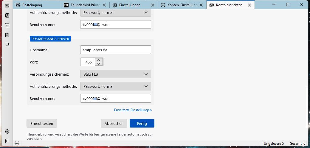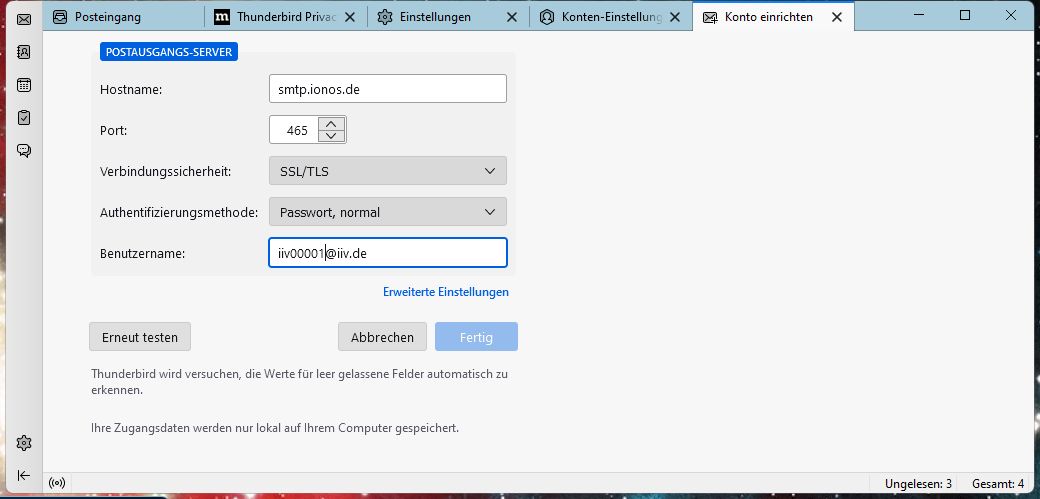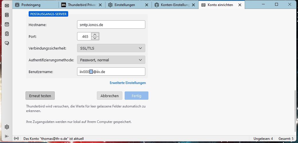 Wie du dein Konto in Thunderbird auf die Angaben prüfst, erfolgt weiter unten bei