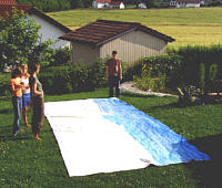 Kleine Fotostrecke, enthält 5 Abschnitte: Bemalen der Leinwand, Aufbau Bühne und Technik, Vorabend des Konzertes, Konzert, Abbau