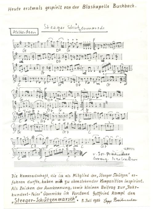 komponiert von Sepp Preitnacher, gewidmet der SG Steeg 1886 zum 100jährigen Jubiläum